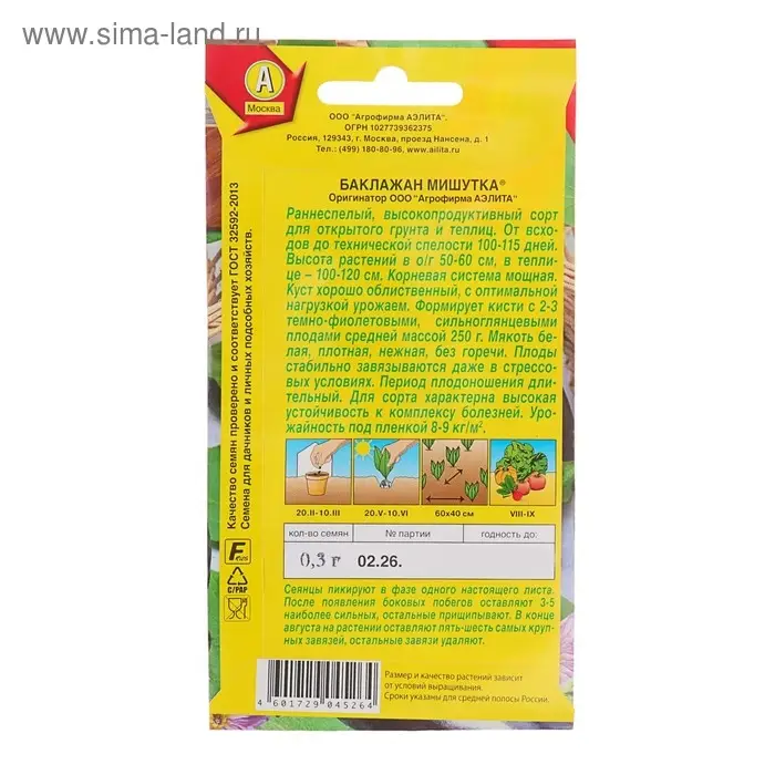 Семена Баклажан "Алёшка", F1, скороспелый, 0,05 г