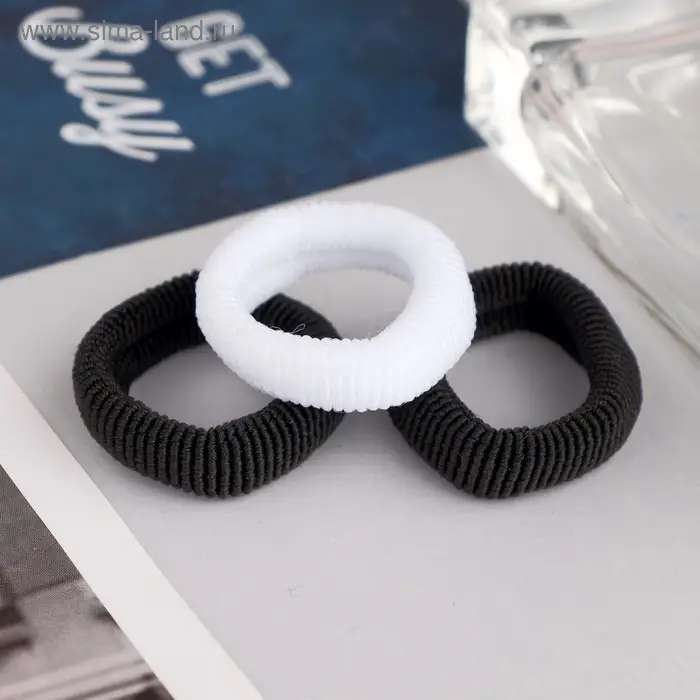 Резинка для волос "Секреты красоты" (набор 3 шт) 5,5 см, чёрный белый
