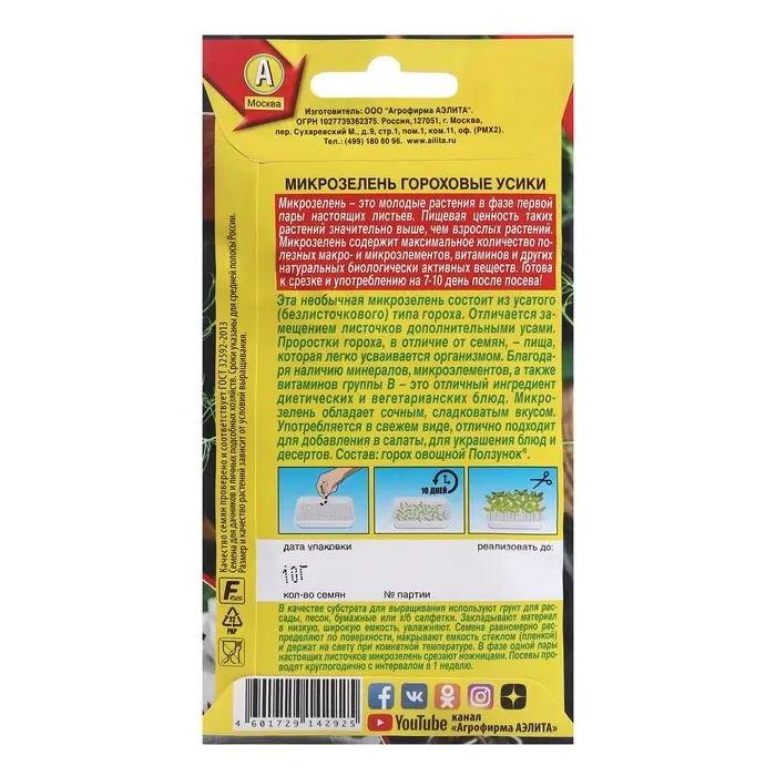 Семена Микрозелень "Гороховые усики", 10 гр.