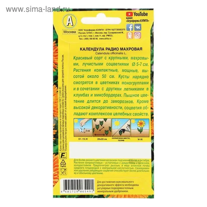 Посев: апрель - на рассаду для посадки на балкон, май - в открытый грунт. Спустя 2-4 недели после всходов растения прореживают или рассаживают на расстояние 20 см друг от друга. Для календулы подходит любая садовая земля, солнечное или полузатененное местоположение.