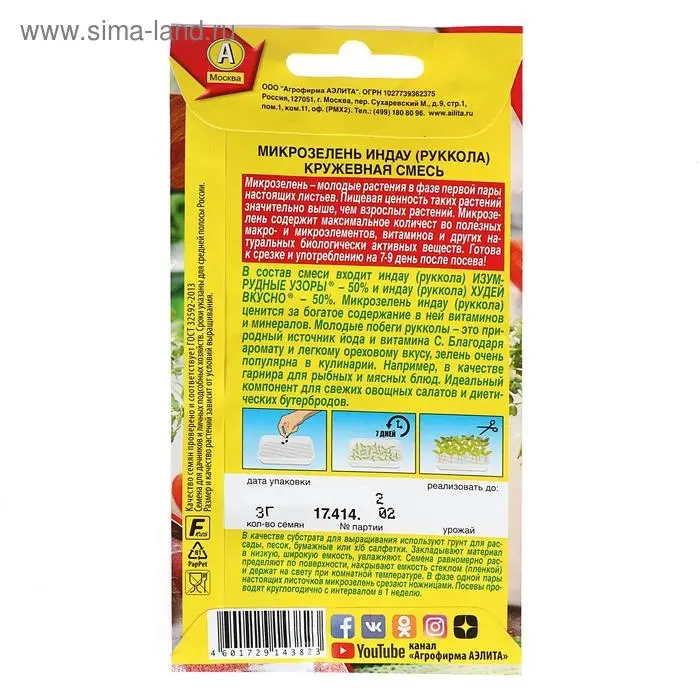 Микрозелень – молодые растения в фазе первой пары настоящих листьев. Пищевая ценность таких растений значительно выше, чем взрослых растений. Микрозелень содержит максимальное количест во полезных макро- и микроэлементов, витаминов и других натуральных биологически активных веществ. Готова к срезке и употреблению на 7-9 день после посева!