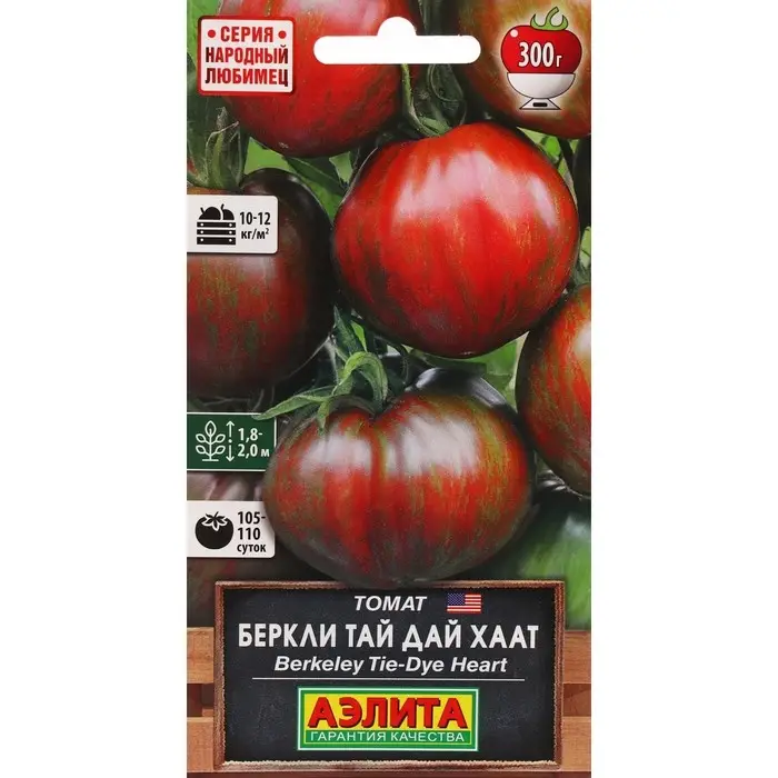 Достойный и популярный у садоводов томат из семейства Berkeley Tie-Dye. Создан известным американским селекционером Брэдом Гейтсом. Томат раннего срока созревания – от всходов до первого сбора плодов 105-110 суток. Сорт рекомендуется выращивать в теплицах и открытом грунте. Растение индетерминантное, в теплице высотой 1,8-2,0 м. Плоды* с очень яркой и неповторимой окраской, массой 250-300 г, плотные и мясистые, не растрескиваются. Насыщенный томатный вкус с фруктовым оттенком заслужил только восторженные отзывы. Сорт прекрасно подходит для приготовления салатов, консервирования, вяления и переработки на томатопродукты. Урожайность в теплице – 10-12 кг/м2.