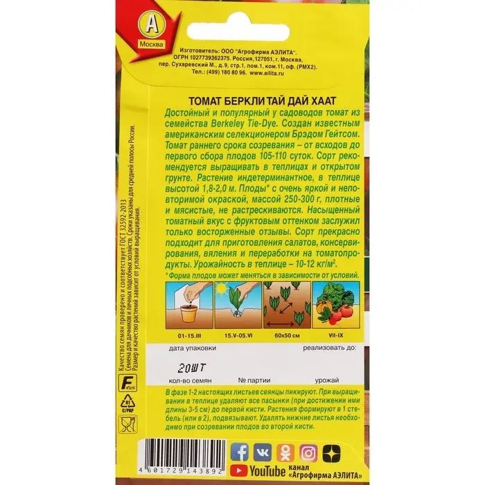 Семена Томат "Беркли тай дай хаат", ц/п, 20 шт