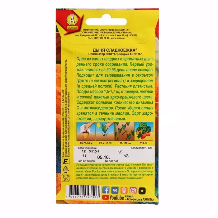 Семена Дыня "Колхозница 749/753", 0,5 г