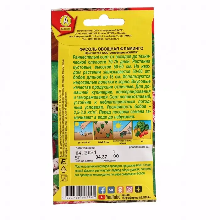 Семена Фасоль овощная "Фламинго", ц/п, 5 г