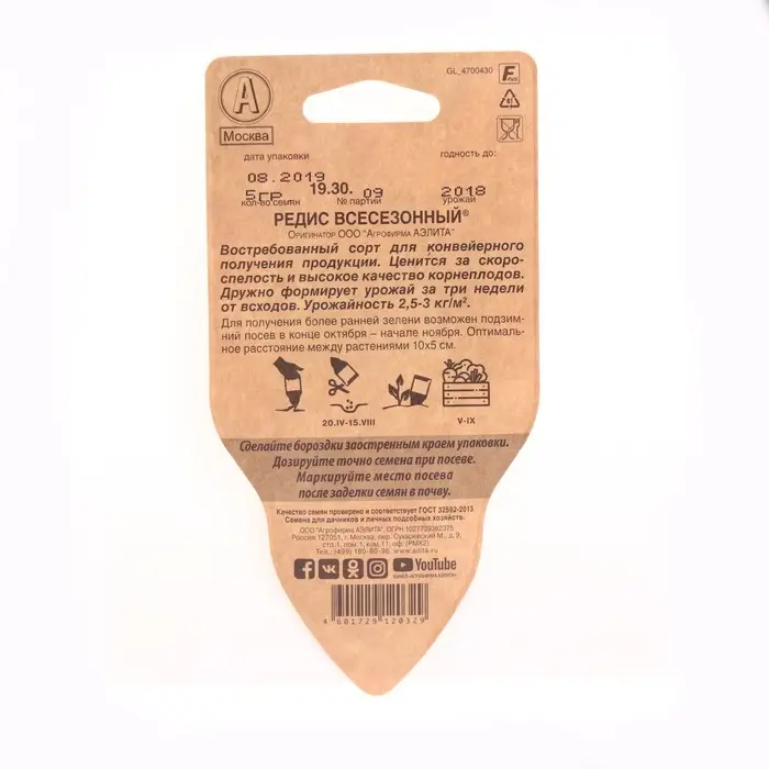 Семена Редис "16 дней",набор 5 шт