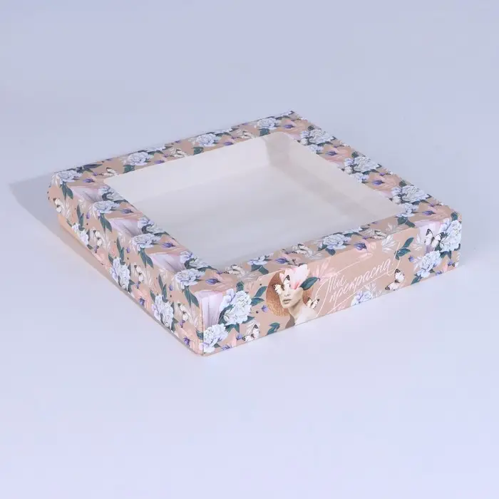 Кондитерская упаковка, коробка с ламинацией «Ты прекрасна!», 20 х 20 х 4 см