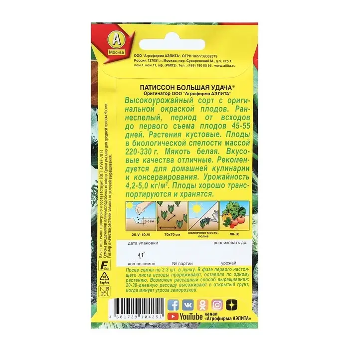 Семена Патиссон "Большая удача", 1 г