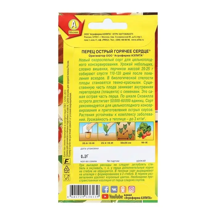 Семена Перец острый "Горячее сердце", Шкала Сковилла, 20 шт