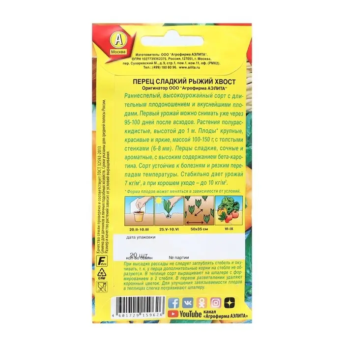 Семена Перец сладкий "Рыжий хвост", 20 шт