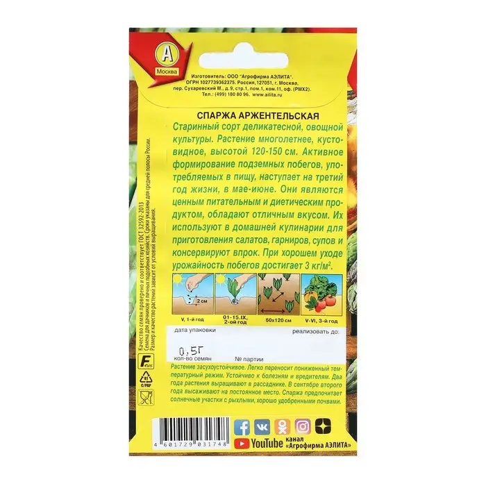 Семена Спаржа "Аржентельская", 0,5 г