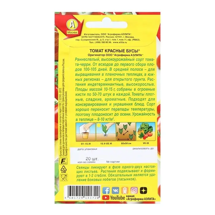 Раннеспелый высокоурожайный сорт черри-томата. От всходов до первого сбора плодов 100-105 дней. В средней полосе – для выращивания в пленочных теплицах, в южных регионах – для открытого грунта. Растения индетерминантные, высотой 150-170 см. Плоды массой 10-15 г, собраны в огромные кисти по 50-70 шт в каждой. Томаты плотные, упругие, сладкие, с приятным ароматом. Это отличное лакомство для детей и взрослых, их съедают прямо с куста. Плоды подходят для консервирования и украшения блюд. Сорт хорошо переносит пониженные температуры и плодоносит до середины осени. Урожайность – 8-9 кг/м 2.