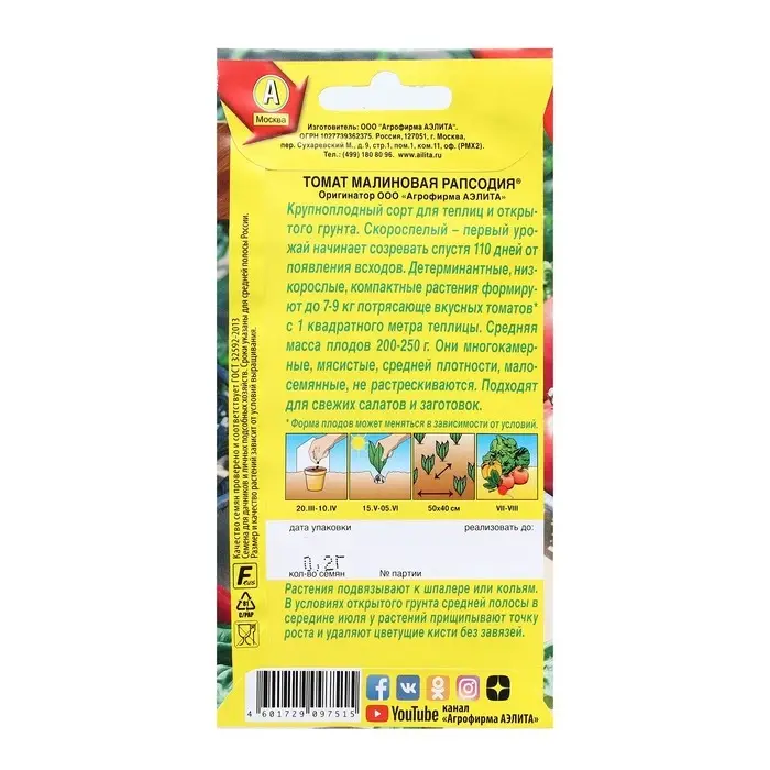 Семена Томат "Малиновая рапсодия"детерминантный,низкорослый 0,2 г