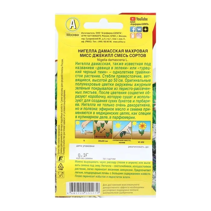 Семена Цветов Нигелла "Мисс Джекилл", смесь сортов, 0,3 г