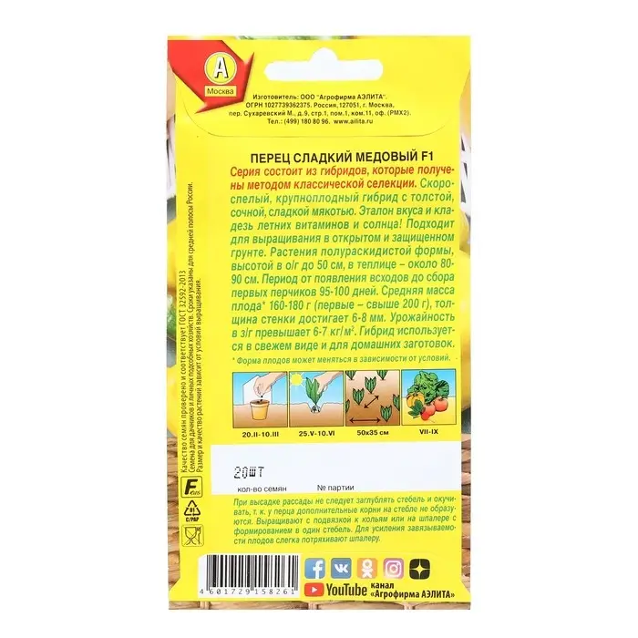 Ультраскороспелый, очень холодостойкий, компактный гибрид для открытого грунта и плёночных укрытий. Плоды крупные, 180-200 г, толстостенные, кубовидные, гладкие, в биологической спелости жёлтые. Отличается повышенным содержанием аскорбиновой кислоты и сахара. Обладает очень сильным перечным ароматом, сладкий, сочный и вкусный. Прекрасно подходит для всех видов переработки.
