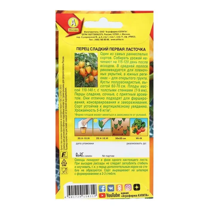 Семена Перец сладкий "Первая ласточка", 0,2 г