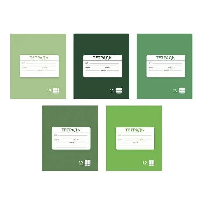 Тетрадь 12 листов в клетку Calligrata "Однотонная Новая Школьная. Эконом", обложка мелованная бумага, ВД-лак, блок №2 (серые листы), МИКС