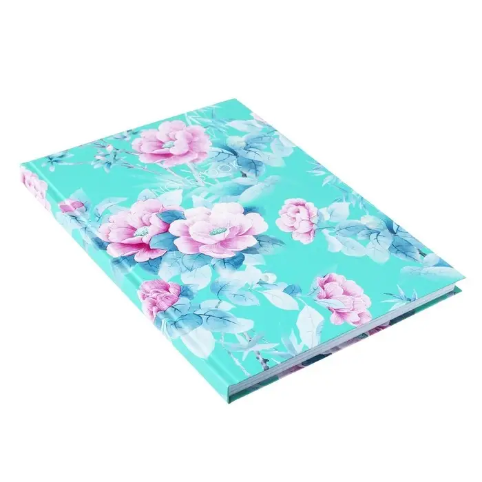 Колледж-тетрадь в твердой обложке 7БЦ, А4, 160 листов, Цветы на мятном фоне, блок в клетку, матовая ламинация, ВЫБОРОЧНЫЙ ЛАК