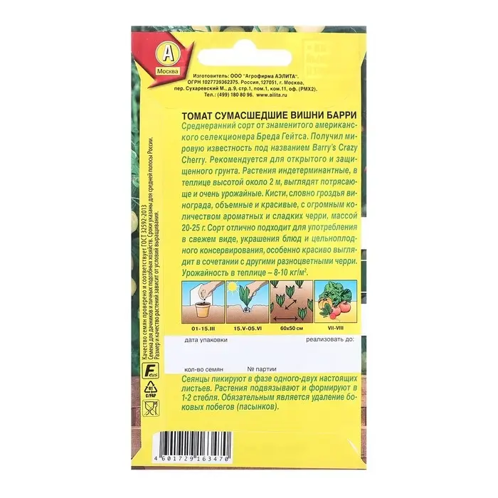 Семена Томат Сумасшедшие вишни Барри Р Народный любимец Ц/П,индетерминантный 20шт