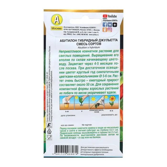 Выращивание Семена Абутилон гибридный Джульетта, смесь сортов Мн Золотая серия не требует особых усилий и знаний. Растение отличается неприхотливостью и может расти как в открытом грунте, так и в горшках на окнах. Для обеспечения оптимальных условий роста и развития, необходимо поддерживать постоянный уровень влажности почвы и обеспечивать растению достаточное количество света.
