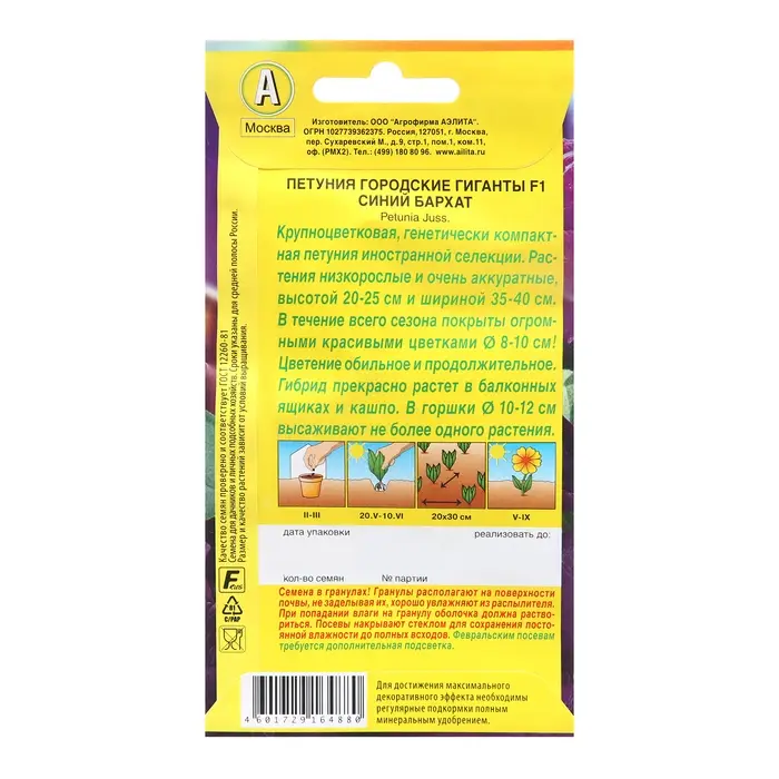 Семена Петуния Городские гиганты F1 синий бархат Одн (драже в пробирке) Ц/П 7шт
