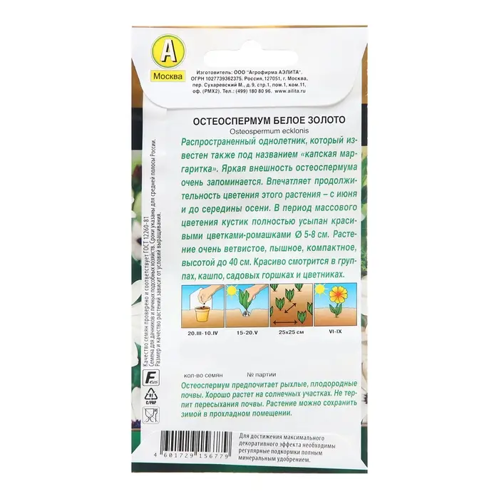 Семена Цветов Остеоспермум "Белое золото" , 10 шт
