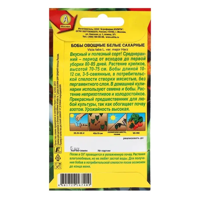 Семена овощных бобов "Белые сахарные" станут отличным дополнением к вашему саду. Эти бобы идеально подходят для выращивания в открытом грунте и обещают средние сроки созревания, что делает их универсальным выбором для любого огородника.