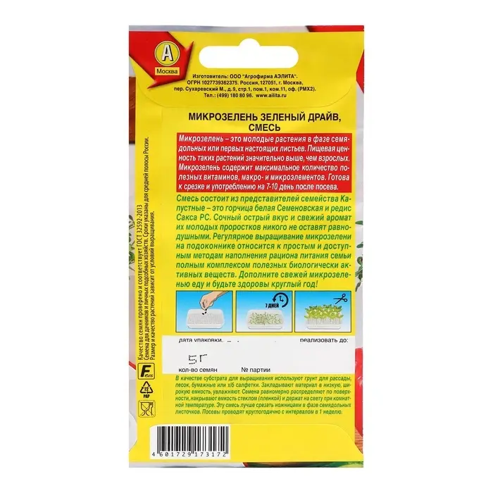 Семена Микрозелень "Зеленый драйв" смесь, ц/п, 5 г