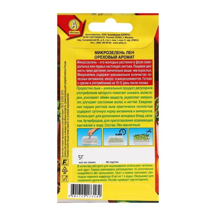 Семена Микрозелень Лен "Ореховый аромат", ц/п, 5 г