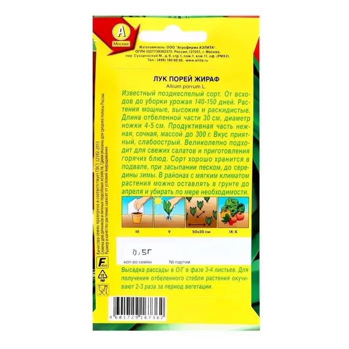 Семена Лук порей "Жираф", ц/п, 0,5 г