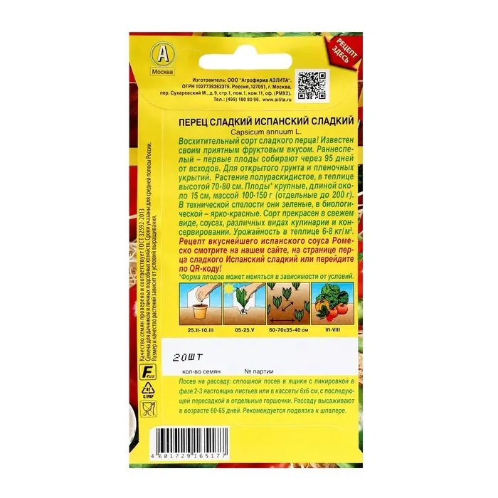 Семена сладкого перца с ярким названием «Испанский сладкий» подарят вам возможность вырастить настоящий деликатес прямо на вашем участке. Красные, сочные и сладкие плоды станут украшением любого стола и настоящей находкой для любителей свежих овощей.