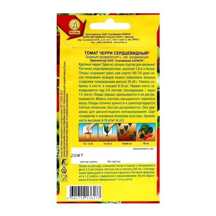Семена Томат "Черри сердцевидный", ц/п, 20 шт