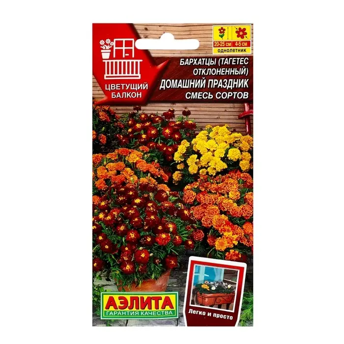 Цветочные семена «Домашний праздник» помогут создать яркий и живописный цветник. Эта смесь сортов бархатцев станет настоящим украшением вашего сада, наполнив его цветами низкорослых кустов со светолюбивыми, махровыми соцветиями. Идеальные для летнего цветения, они не только украсят клумбы, но и привнесут радость в ваш садовый мир.