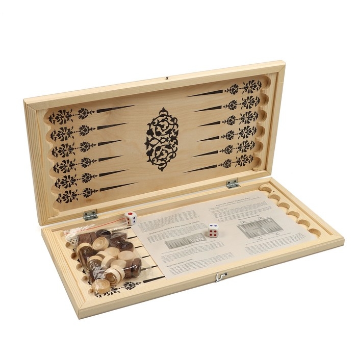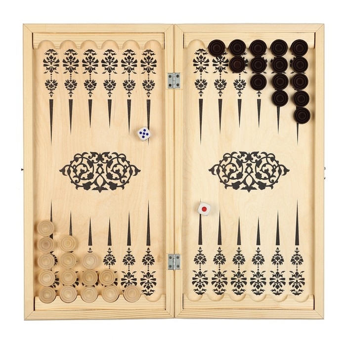 Нарды деревянные большие, настольная игра "Узор", 40 х 40 см, с полем для игры в шашки