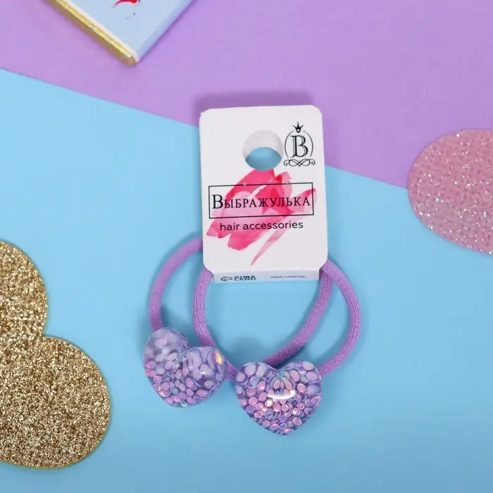 Резинки для волос «Веста», набор 2 шт., сердце, 3 см, сиреневые