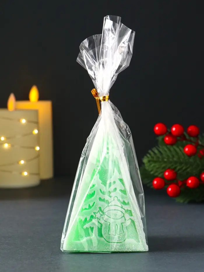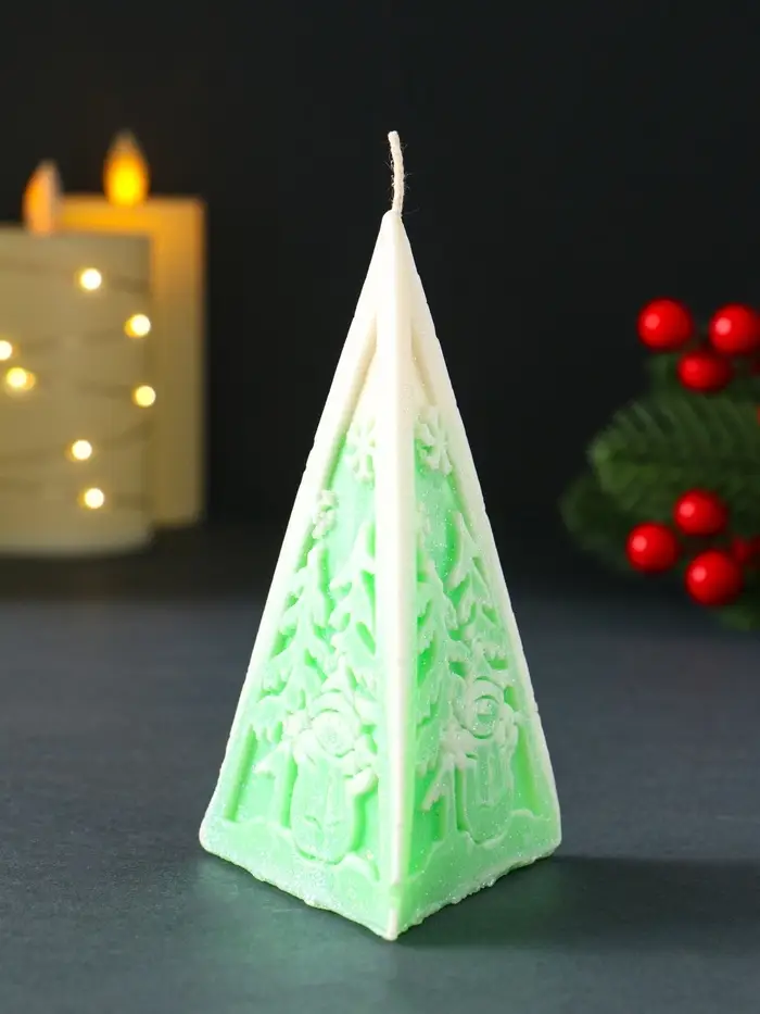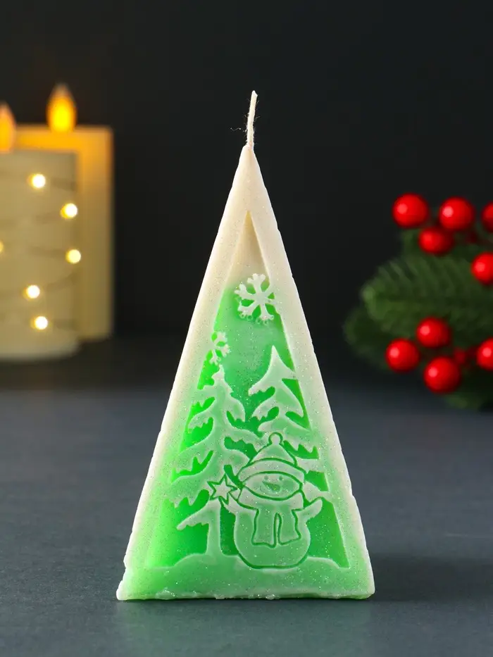 Свеча новогодняя пирамида "Снеговик" 60х120 мм, зелёный