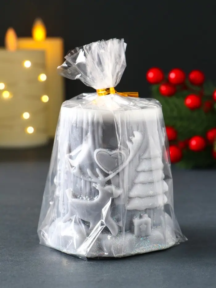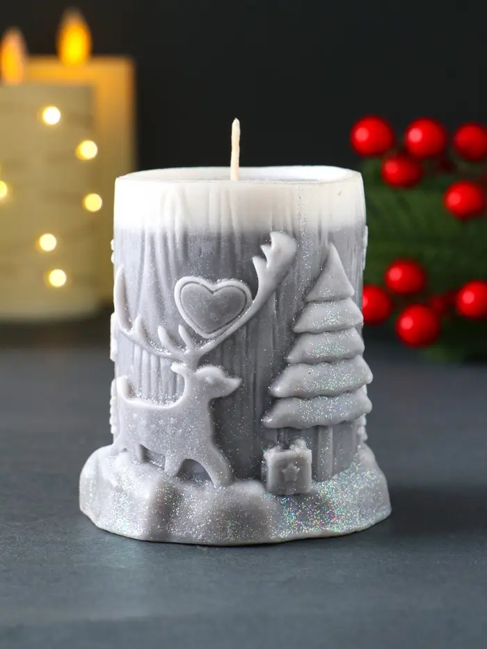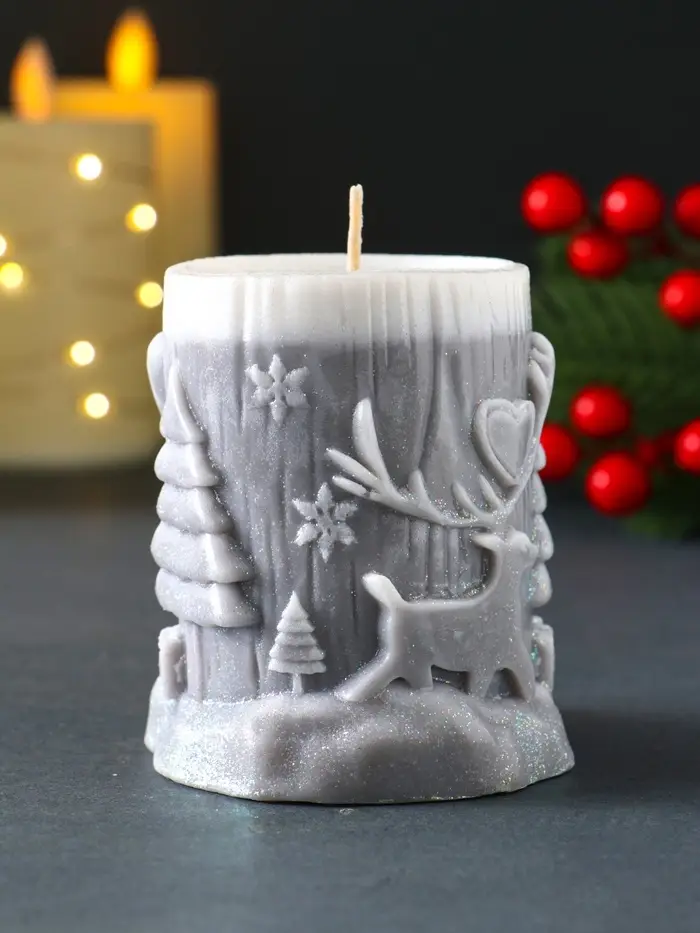 Свеча новогодняя столбик "Сказочный лес" 75х82 мм, серый