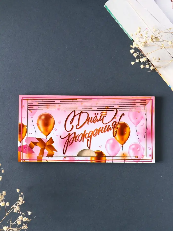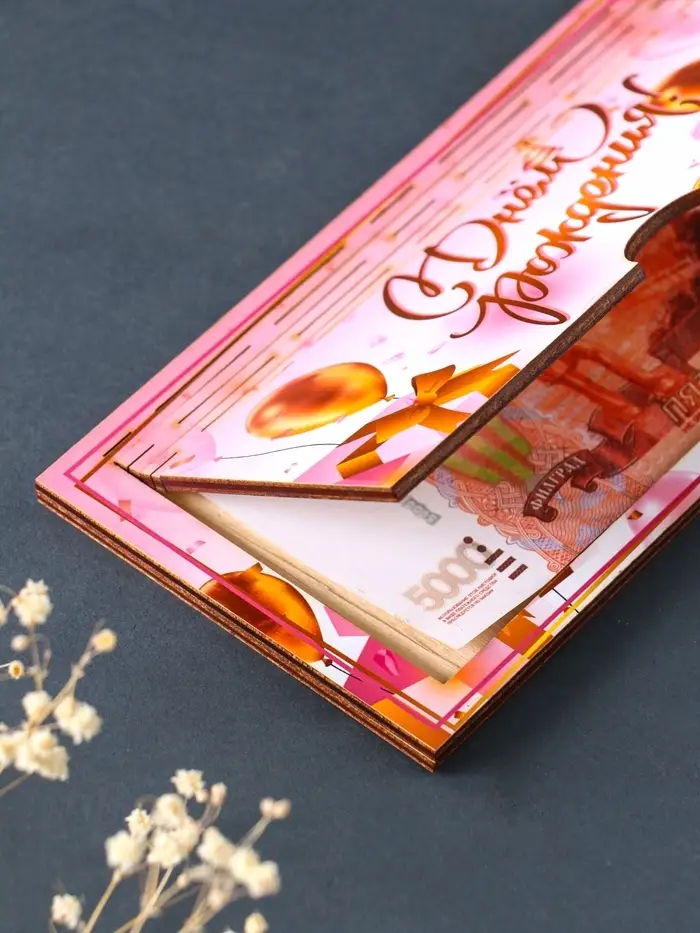 Купюрница "С Днём Рождения" шкатулка для денег, розовый