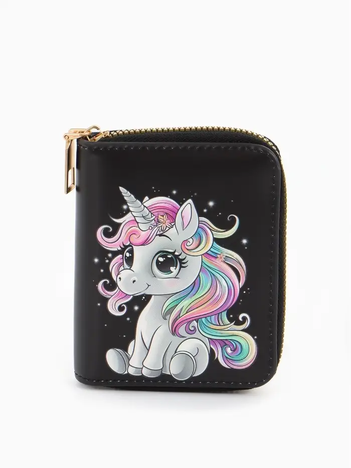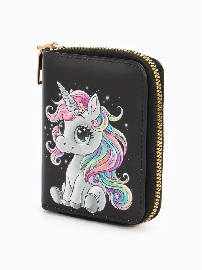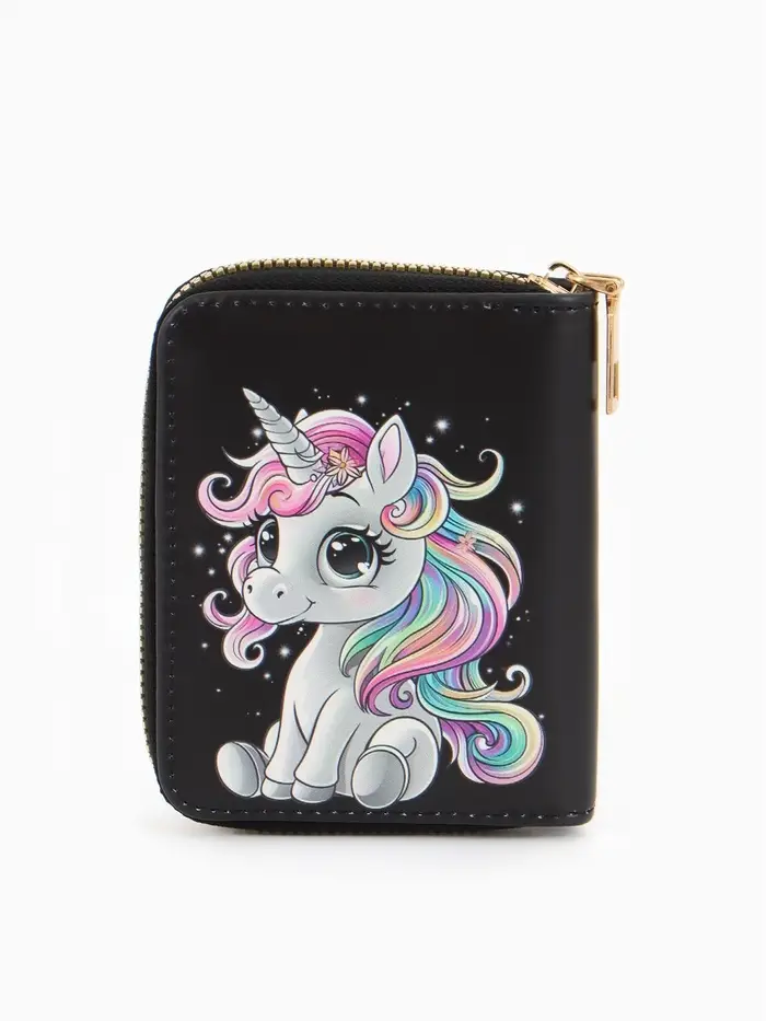 Кошелек дет 07-01-01 Июнь2547 единорог, 8,5*2,5*10,5 см, 2 отд+отд/молн, д/карт, черный