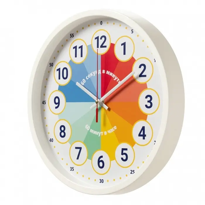 Часы настенные "Обучающие", детские, плавный ход, d-30см, белые