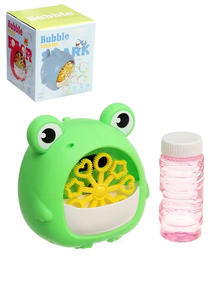 Генератор мыльных пузырей "Лягушка", работает от батареек, цвет зелёный
