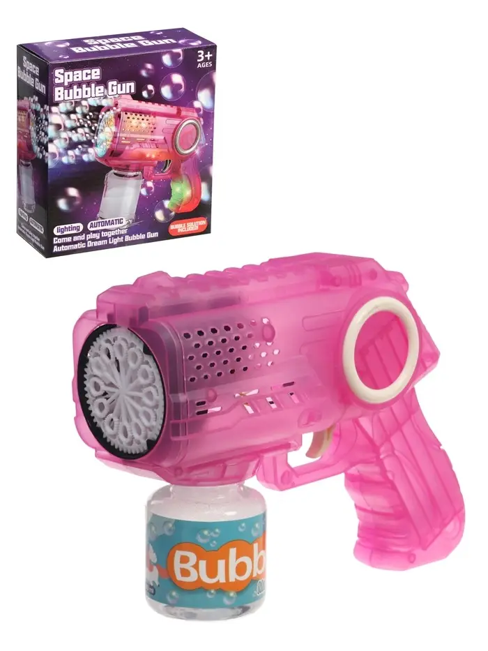 Генератор мыльных пузырей "Космический Бластер", световые эффекты, цвет розовый