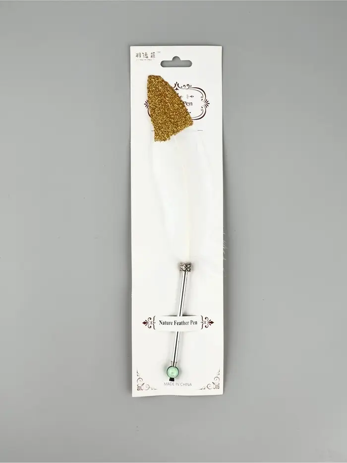 Перо белое+блестки золото (наконечник ручка), дл.25 см