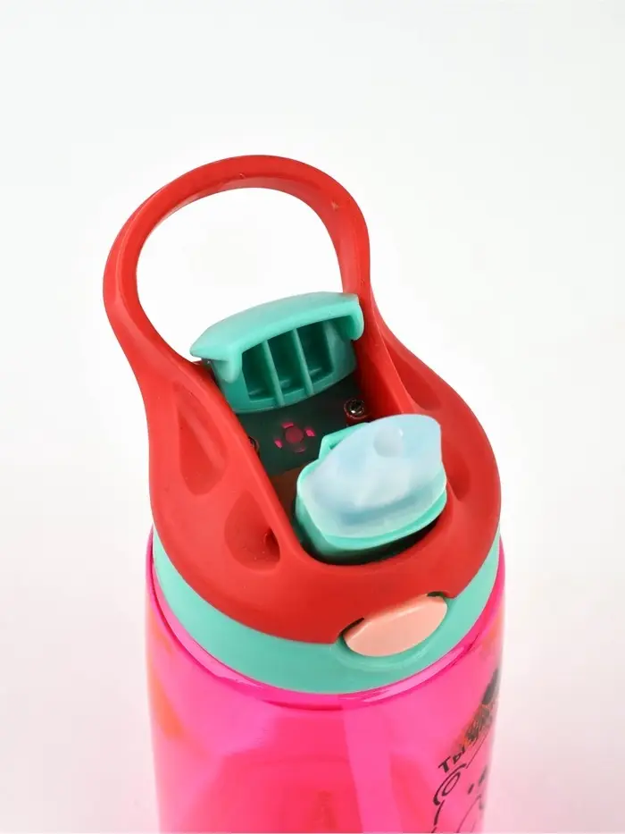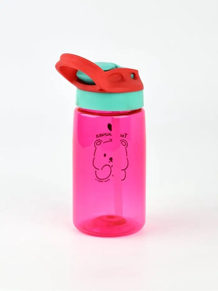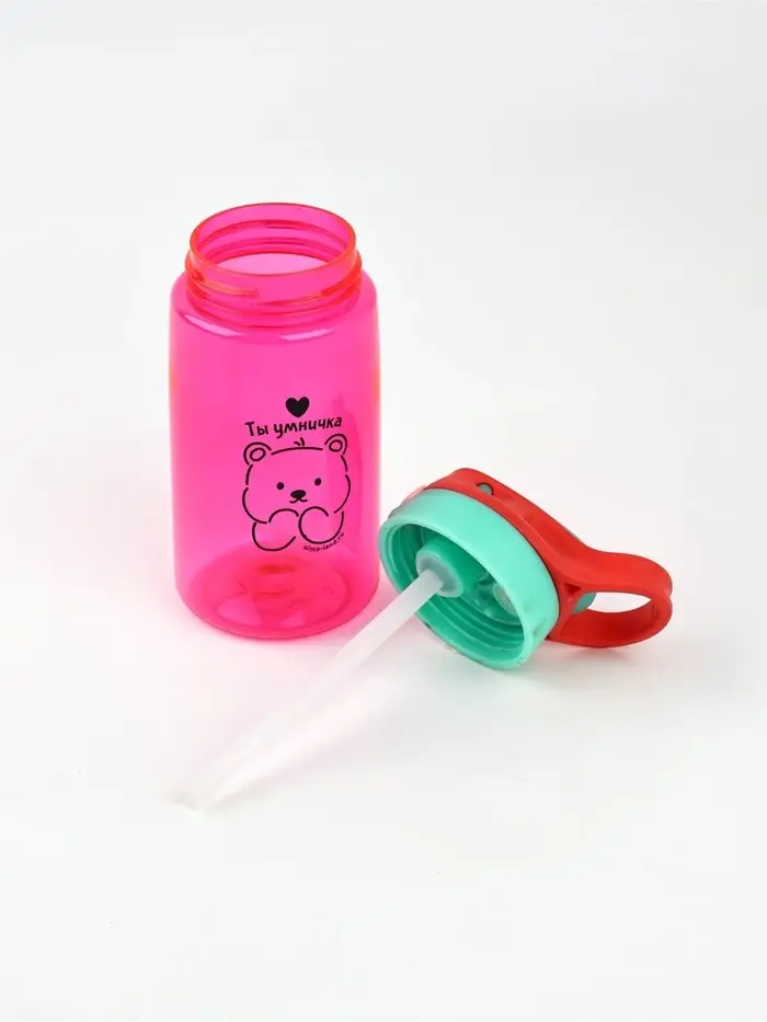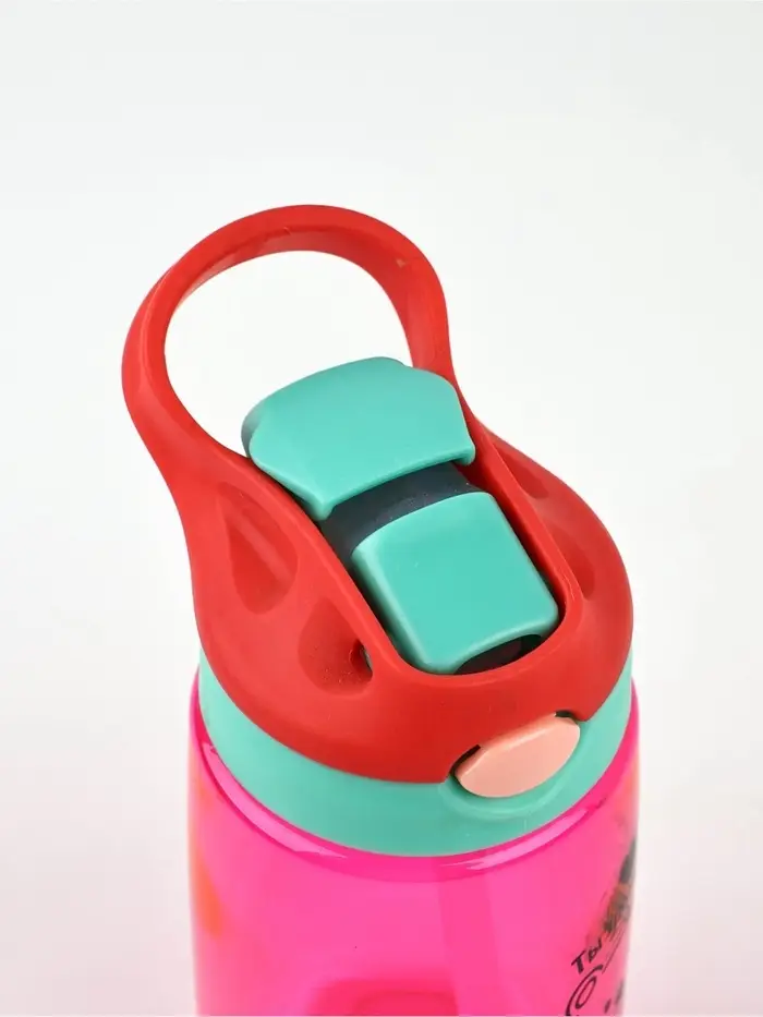 Особенностью этой бутылки является наличие петли на крышке. Это делает её удобной для переноски. А внутри бутылки есть трубочка, благодаря которой удобно пить воду даже на ходу.