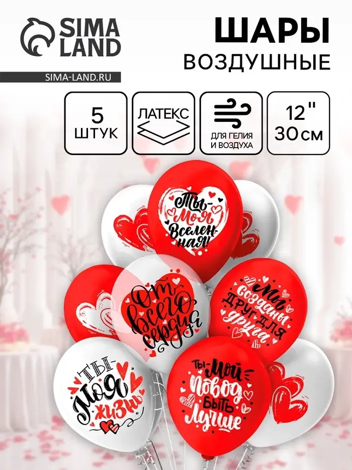 Воздушные шары латексные 12" "От Всего Сердца! 5 дизайнов" пастель МИКС 2ст. 2цв. , набор 5 шт. 1091