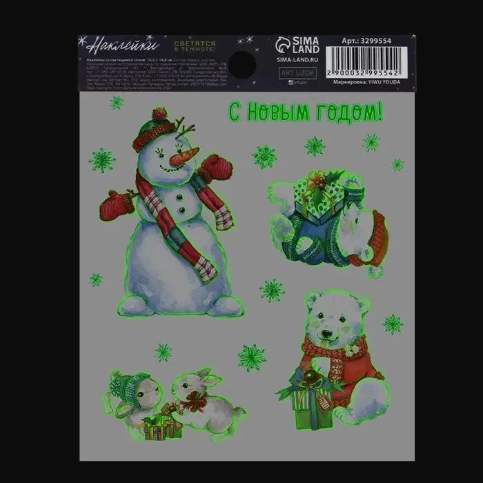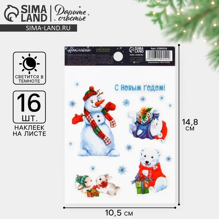 Наклейки новогодние со светящимся слоем «Волшебных моментов», 10,5 х 14,8 х 0,1 см
