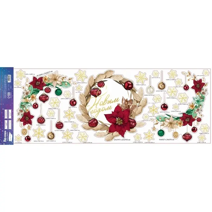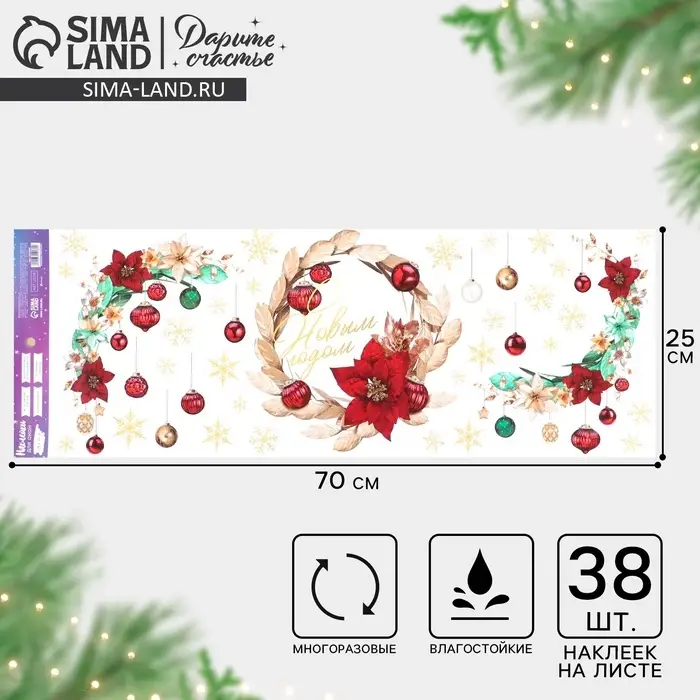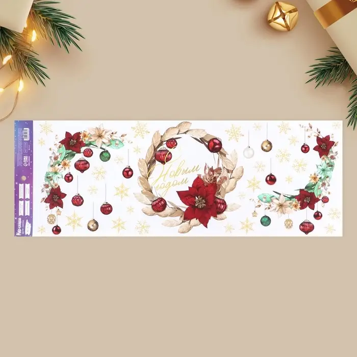 Наклейки новогодние на окна, виниловые «Роскошь золота», венок, многоразовые, 70 х 25 см