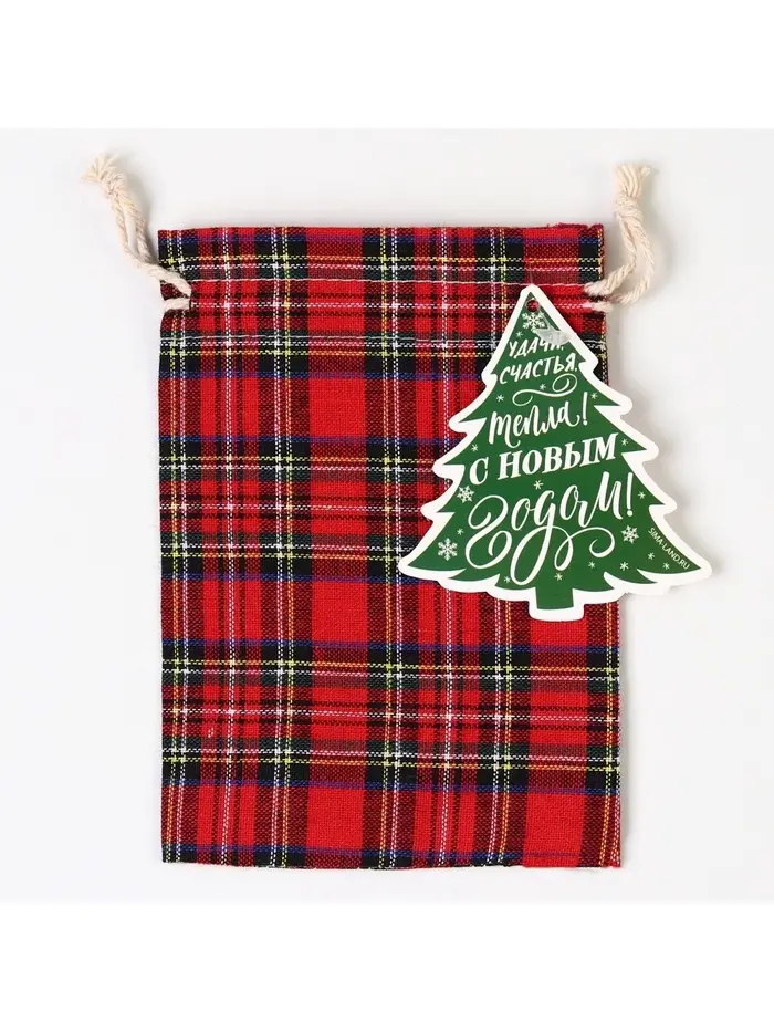 Мешочек подарочный холща «Новогодняя клетка», 16 х 24 см +/- 1.5 см, Новый год