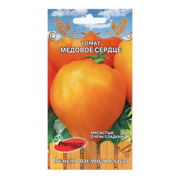 «Медовое сердце» — это раннеспелый сорт томатов для открытого грунта и теплиц. Период от всходов до начала созревания — 90–94 дня. Растение украшают сердцевидные ярко-оранжевые плоды массой 120–140 г.