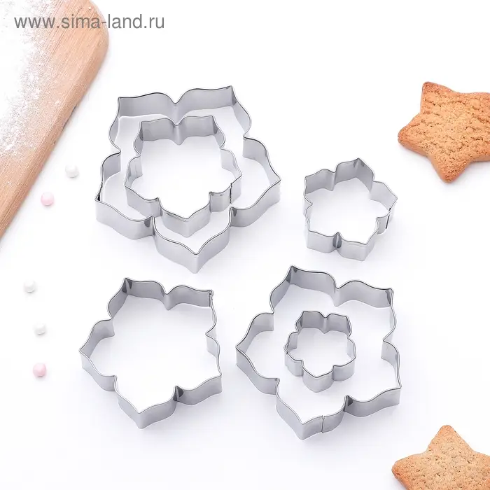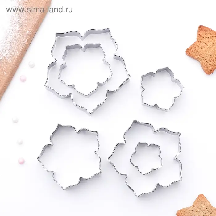 Набор форм для печенья «Лепестки петуньи», 7,5×7 см, 6 шт, цвет серебристый